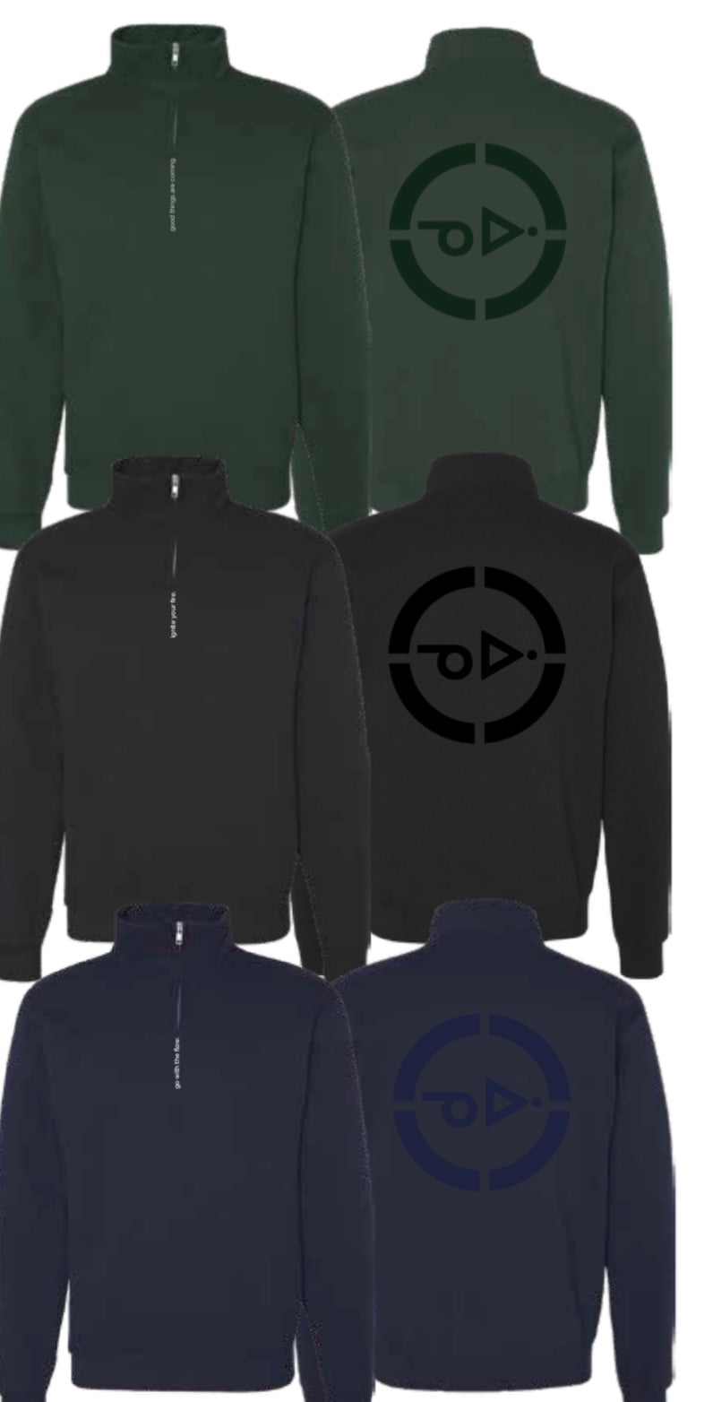 Luxury Quarter Zip Sweater with affirmations down the front and the medicine wheel printed on the back. Sleek, fine detailing make these a beautiful piece to wear and uphold those affirmations.